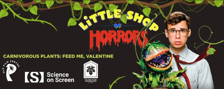 Join them on Valentine’s Day for their first Science on Screen selection, The Little Shop of Horrors (1986), a cult musical that turns one of nature’s strangest realities into darkly comic spectacle. After the screening, Drs. Jenn Yost and Matt Ritter, joined by Gage Willey, Cal Poly’s Plant Conservatory Curator, will dig into the real science behind Audrey II and her carnivorous kin.
