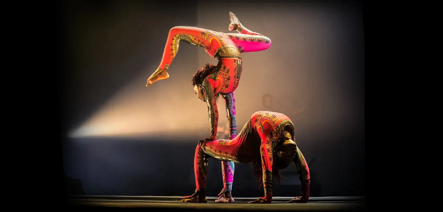 Afrique en Cirque is a show by Yamoussa Bangoura, inspired by daily life in Guinea. This performance shares the beauty, youth and artistry of African culture. A colorful show beyond its scenery, costumes and staging, it makes any theatre vibrate with energy and represents the strength, agility and life’s joys of young Africans. The audience will see acrobats execute gravity-defying moves and human pyramids, accompanied by the contemporary sounds of live Afro-Jazz, percussion, and kora. Welcome to the universe of Kalabanté Productions, and prepare for an unforgettable journey.
